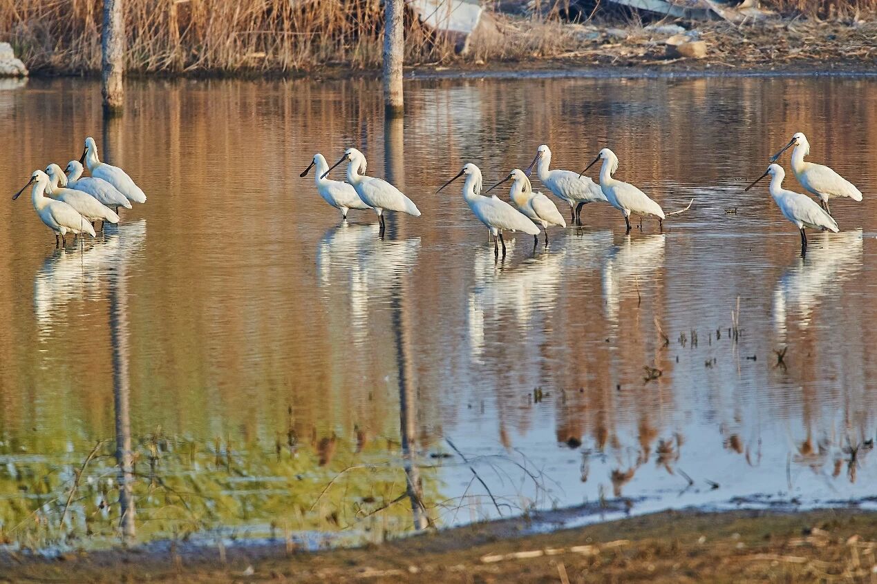 二是塌陷洼地孕育“生命绿洲”,湿地修复绘就生态画卷。通过持续治理,塌陷区生态环境持续好转,综合治理后湿地面积已达8000余亩,生物多样性日益丰富。湿地植被和水域为野生鸟类提供食物和栖息条件,吸引了众多鸟类栖息和迁徙,形成了兖州区独特的生态景观。据调查,兖州区境内鸟类种类由99种增至139种,其中彩鹮、青头潜鸭等国家一级保护鸟类6种,震旦鸦雀、白琵鹭等国家二级保护鸟类27种。