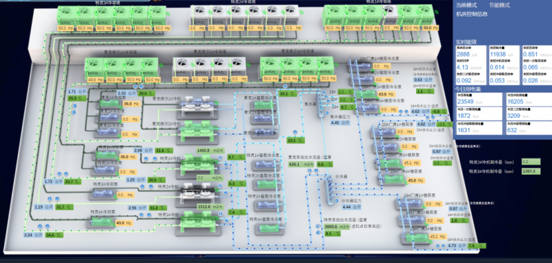 构建全域感知网络,夯实数据基石:项目精心部署近400块智能电表、水表及流量计,数十台冷水机组及其附属设备,以及末端空气处理设备,高效接入超过4万个能源数据点位,构建覆盖暖通、空压系统的全方位物联感知网络,为精细化能源管理奠定坚实数据基础。