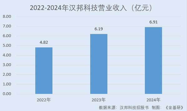 据招股书,2022-2024年,汉邦科技的营业收入分别为4.82亿元、6.19亿元、6.91亿元,年均复合增长率为19.75%。